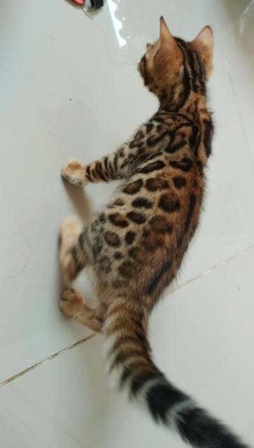 Sebagian besar ras ini memiliki warna hitam dan cokelat tapi ada juga yang tampil dengan bulu perak kehitaman bahkan biru. Kucing bengal memang cenderung energik dan suka bermain terutama kecintaannya terhadap air. Kucing bengal jantan 9 bulan non ped non vaksin.